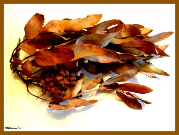 И я вчера заметил как от сильного ветра, который недавно был в городе с проливным дождём, обломившаяся гроздь рябинки качалась на лёгком ветерке. Благодаря своему росту, я протянул руку и оторвал висящую почти на волоске засыхающую веточку не созревшей рябинки. Или от того что рядом собор, или через внутреннее подсознание- но чувствуется нежный ладан от этой рябиновой кисти! И ещё эти не совсем засохшие листочки говорят, что в них будет храниться тепло наступившего лета,которое проходит как любое время года, и как отголосок жизни, она будет нести свою дивную энергетику, посланную природой....