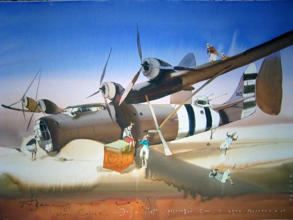 Вот самолет взлетает и размахивает крыльями,