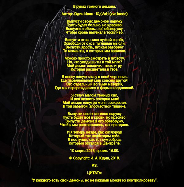 Мой демон изнутри меня воскресил,