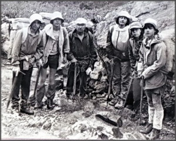 На фото - Под перевалом Наур, Петрович третий слева, 1990 год.
