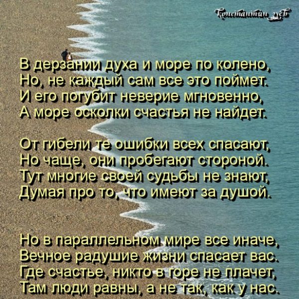 Количество просмотров пользователями: 4 Общее количество просмотров: 597 Другие стихи автора: Твой Враг... Другого Раза Может И Не Быть... Киношный Страх... Вечный Туман... Хорошие Слова... | |||||||||||||||||||||||||||||||||