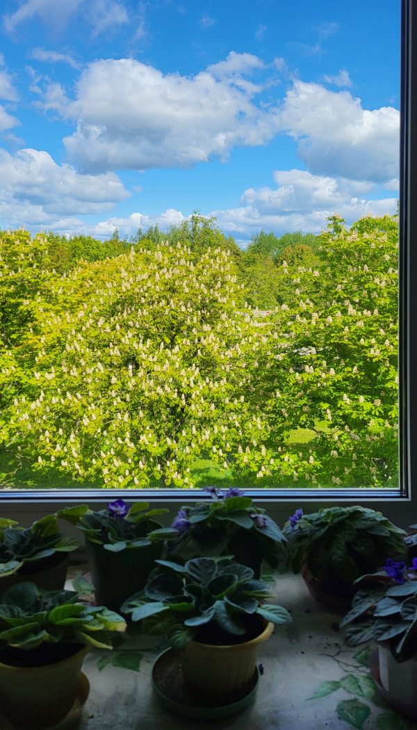 Цветут каштаны за окном. Красиво.